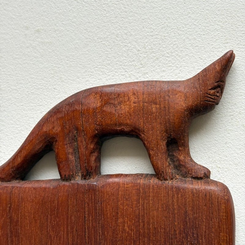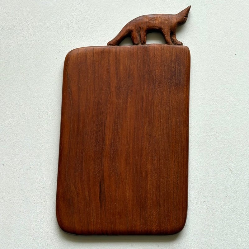 奥山泉さんの動物などユニークな彫刻が施されたカットボード
