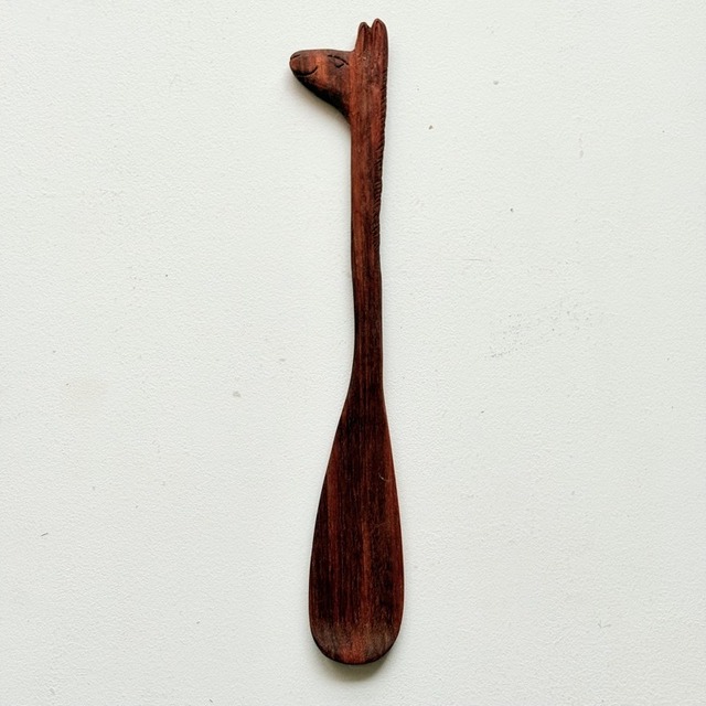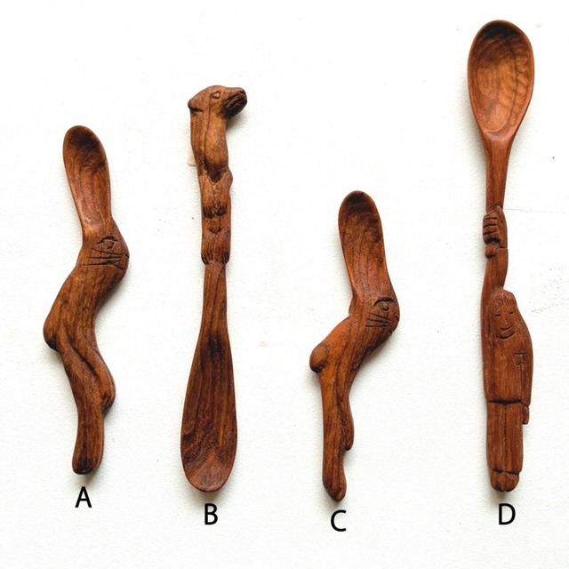 奥山泉さんの動物などのユニークな彫刻が施されたヘラ