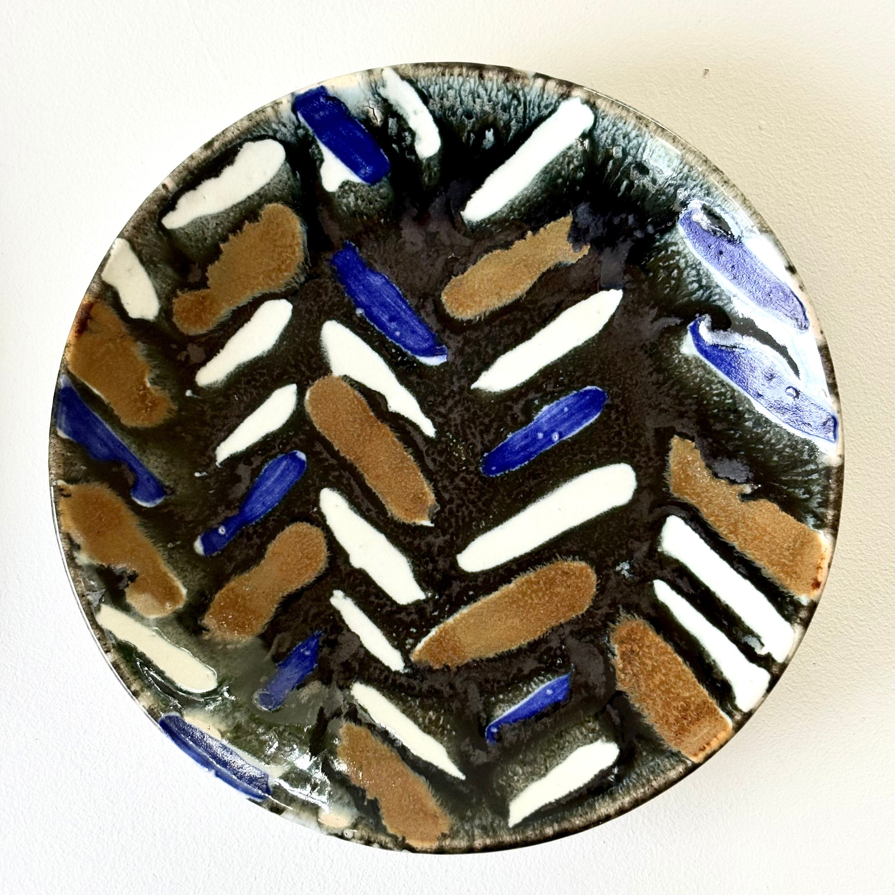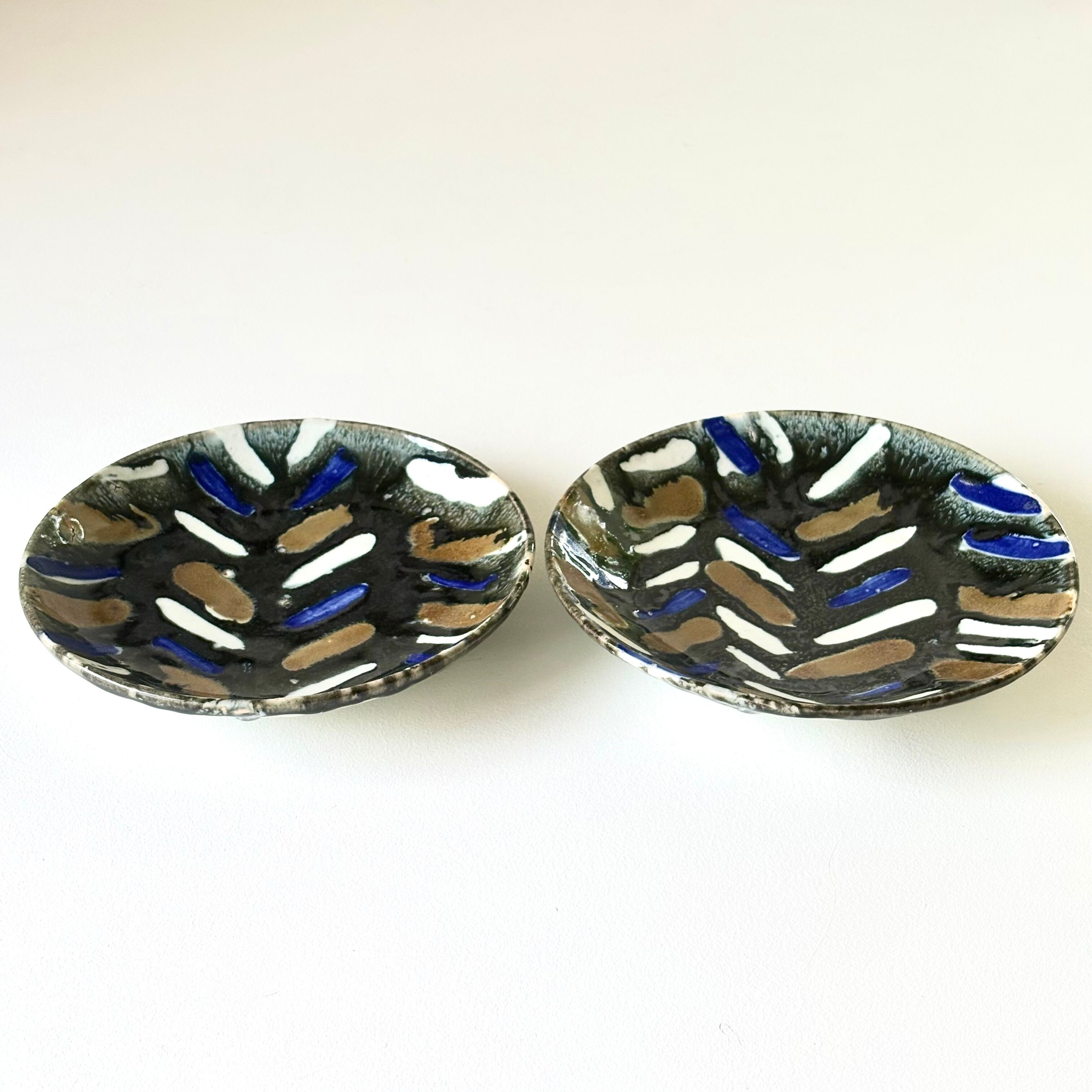 釉薬の滲みが模様に深みを出していて食材をひきたてます