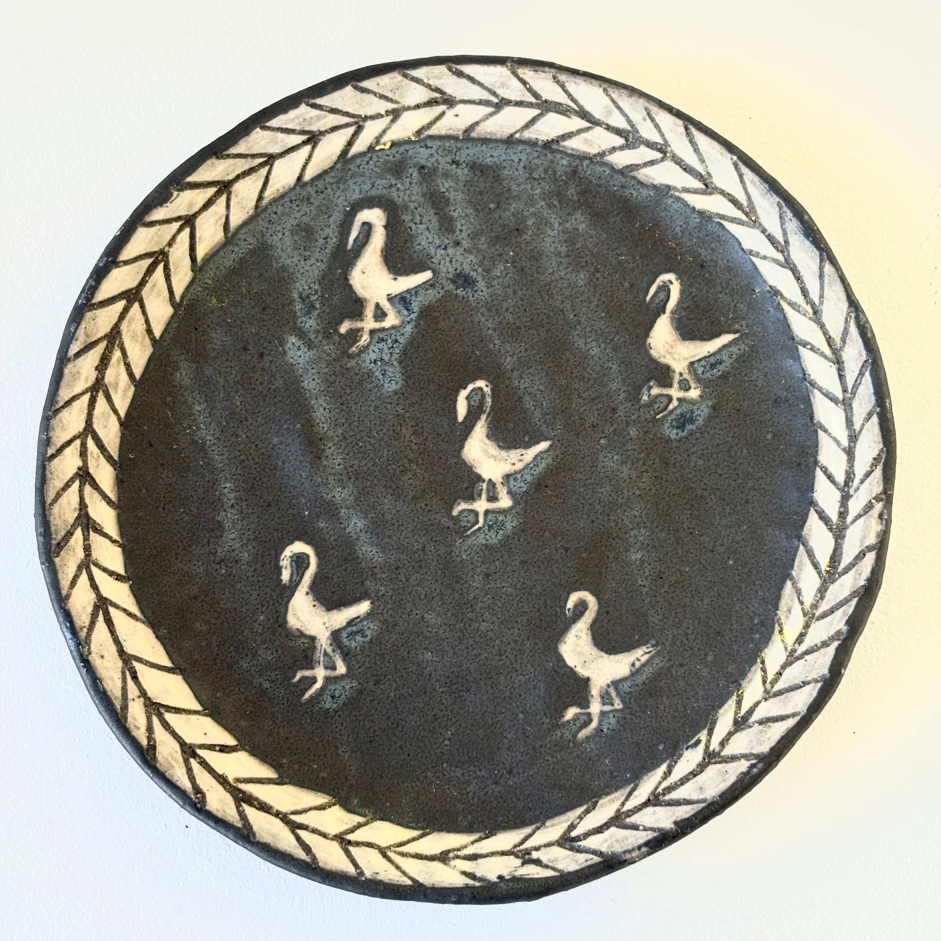 手捻りの柔らかなラインに、トリやクロスの絵付けがステキです